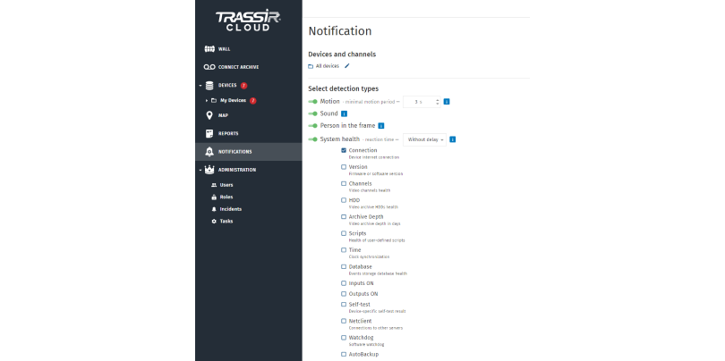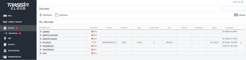 Los usuarios de CMS pueden acceder a una interfaz simplificada de la versión web y a la aplicación móvil de TRASSIR CMS. Son especialmente cómodas para la gestión de clientes y son accesibles desde cualquier lugar del mundo.