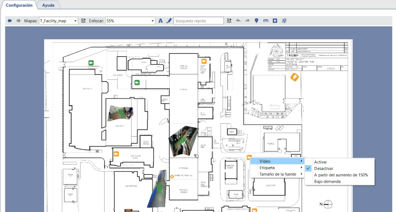 Para que el operador pueda navegar rápidamente entre las cámaras, utilice los planos de las instalaciones.