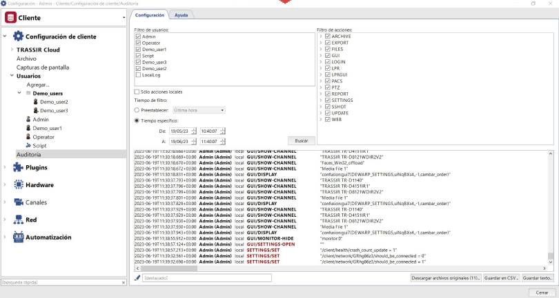 Todas las acciones del usuario quedan registradas y pueden visualizarse en la interfaz.