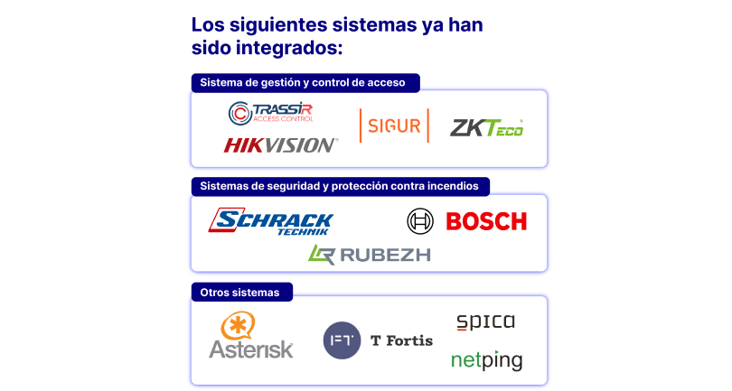 Integraciones con sistemas de control de acceso y sistemas de seguridad y alarma contra incendios